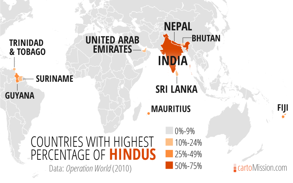 The Indian sub-continent has the largest concentration and variety of least-reached peoples and people groups on earth. The gospel has spread most to the poor and marginalized, while the main body of caste Hindus remains unevangelized … Contextualized, culturally appropriate patterns of Christian life, worship and community are needed. Pray for the Holy Spirit to bring the light of the gospel to influential Hindus.